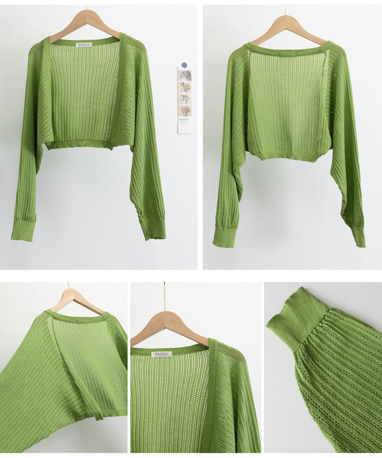 冷房対策 ゆったり体型カバー 春夏長袖羽織 韓国風メッシュニット